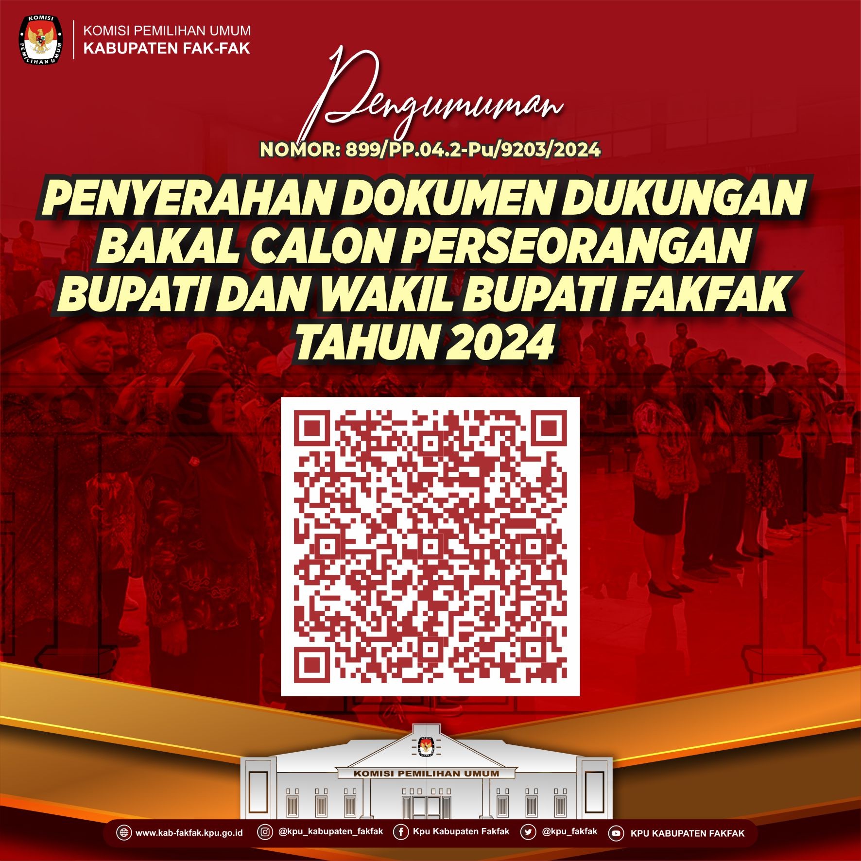 Pengumuman Penyerahan Dokumen Dukungan Bakal Calon Perseorangan Bupati dan Wakil Bupati Fakfak Tahun 2024
