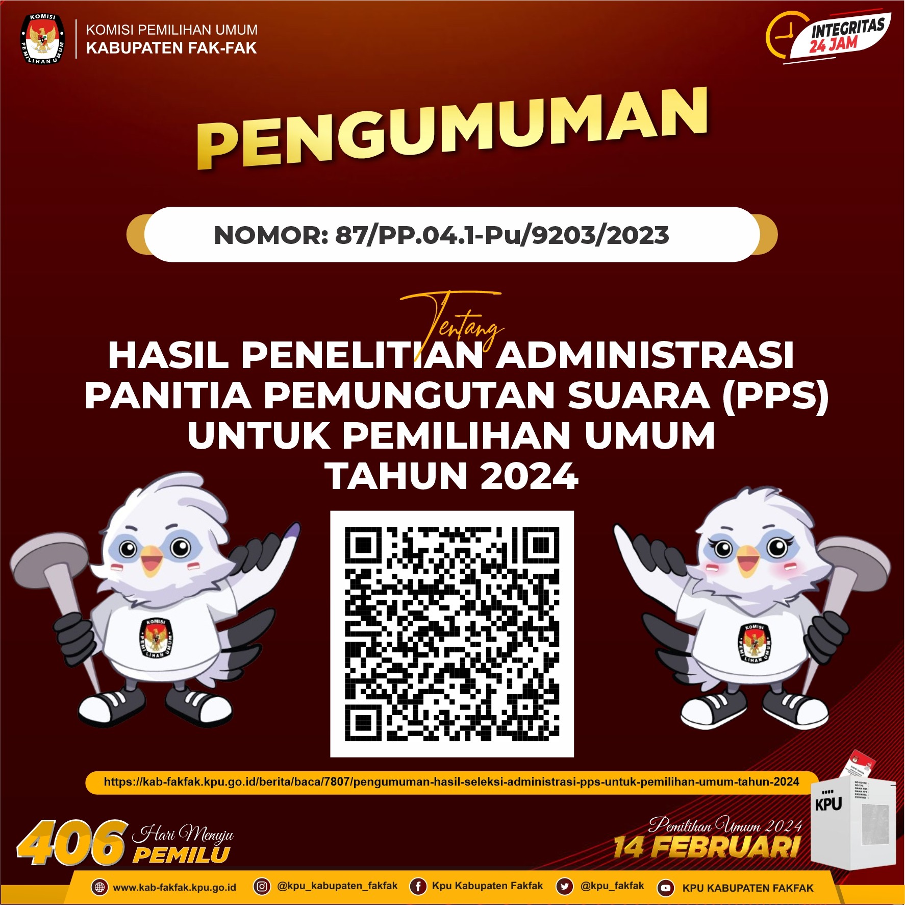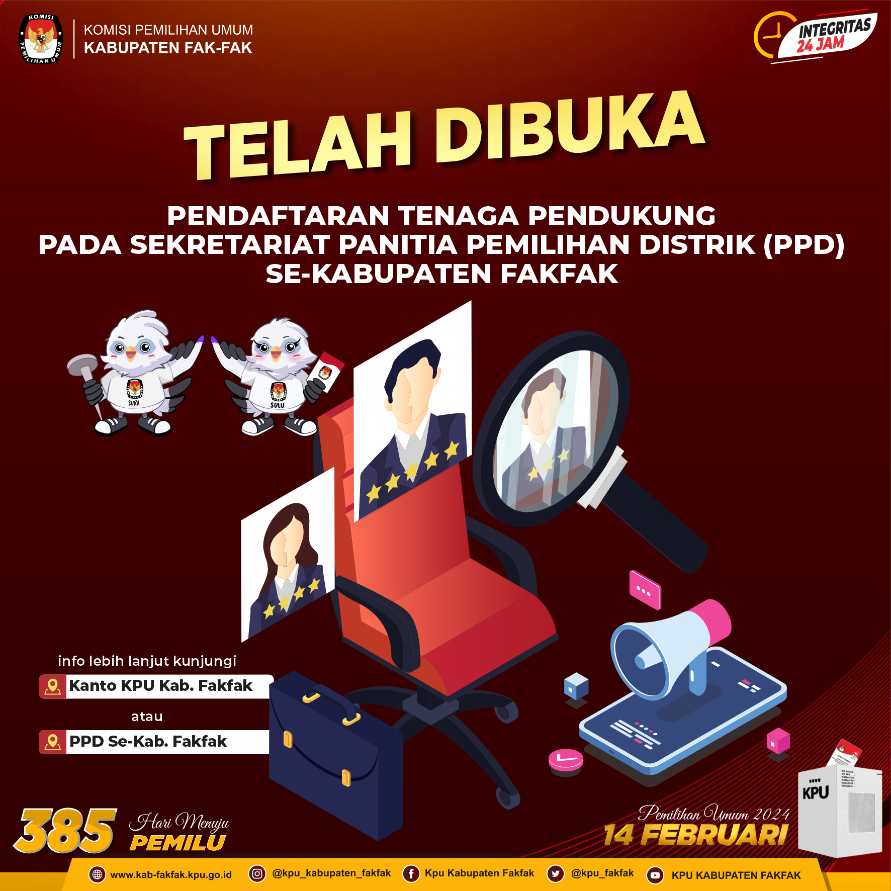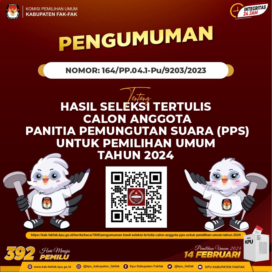 DOWNLOAD PENGUMUMAN Komisi Pemilihan Umum Kabupaten Fakfak membuka penerimaan pengajuan bakal calon anggota Dewan Perwakilan Rakyat Daerah (DPRD) Kabupaten Fakfak untuk Pemilu Serentak Tahun 2024 melalui Partai Politik Peserta Pemilu pada kepengurusan tingkat Kabupaten/Kota dengan ketentuan sebagai berikut: A. DOKUMEN PENGAJUAN 1. Surat Pengajuan menggunakan formulir MODEL B-PENGAJUAN- PARPOL dalam bentuk fisik disampaikan langsung dan digital yang diunggah di Silon; 2. Daftar Bakal Calon menggunakan formulir MODEL B- DAFTAR.BAKAL.CALON disertai foto diri terbaru bakal calon dan dilampiri dengan dokumen pengajuan bakal calon yang ditandatangani oleh Ketua Umum Partai Politik Peserta Pemilu atau nama lain dan Sekretaris Jenderal Partai Politik Peserta Pemilu atau nama lain yang sah sesuai dengan Keputusan Menteri yang menyelenggarakan urusan pemerintahan di bidang hukum dan hak asasi manusia tentang pengesahan susunan pengurus partai politik tingkat pusat dalam bentuk fisik disampaikan langsung dan digital yang diunggah di Silon; dan 3. Dokumen persyaratan administrasi Bakal Calon sebagaimana dimaksud dalam Pasal 12 sampai dengan Pasal 23 Peraturan KPU yang mengatur tentang Pencalonan Anggota DPR, DPRD Provinsi dan DPRD Kabupaten/Kota dalam bentuk digital diunggah di Silon. B. WAKTU DAN TEMPAT PELAKSANAAN PENGAJUAN 1. Waktu Pengajuan a. Hari/Tanggal : Senin, 1 Mei s.d Sabtu 13 Mei 2023 Waktu : Pukul 08.00 s.d 16.00 Waktu Setempat b. Hari/Tanggal : Minggu, 14 Mei 2023 Waktu : 08.00 s.d 23.59 Waktu Setempat 2. Tempat Pengajuan Kantor KPU Kabupaten Fakfak, Jalan Kadamber – Air Merah, Kelurahan Wagom Utara, Distrik Pariwari, Kabupaten Fakfak C. LAIN-LAIN 1. Ketentuan Pengajuan Bakal Calon Anggota DPRD Kabupaten/Kota : a. Partai Politik Peserta Pemilu pada kepengurusan tingkat Kabupaten Fakfak dapat mengajukan bakal calon Anggota DPRD Kabupaten Fakfak apabila telah: 1) memperoleh persetujuan dari Ketua Umum Partai Politik Peserta Pemilu atau nama lain dan Sekretaris Jenderal Partai Politik Peserta Pemilu atau nama lain yang sah. 2) mengirimkan data dan dokumen persyaratan yang diunggah melalui Silon. b. Pengajuan sebagaimana dimaksud huruf a dilakukan oleh: 1) Ketua Partai Politik Peserta Pemilu pada kepengurusan tingkat Kabupaten Fakfak atau nama lain dan sekretaris Partai Politik Peserta Pemilu pada kepengurusan tingkat Kabupaten Fakfak atau nama lain yang sah, 2) dalam hal Ketua Partai Politik Peserta Pemilu pada kepengurusan tingkat Kabupaten Fakfak atau nama lain dan Sekretaris Partai Politik Peserta Pemilu pada kepengurusan tingkat Kabupaten Fakfak atau nama lain yang sah sebagaimana dimaksud pada huruf 1) tidak dapat hadir pada saat pengajuan bakal calon, pengajuan dapat diwakili oleh pengurus Partai Politik Peserta Pemilu pada kepengurusan tingkat Kabupaten Fakfak dengan menyampaikan surat kuasa dari ketua Partai Politik Peserta Pemilu pada kepengurusan tingkat Kabupaten Fakfak atau nama lain dan sekretaris Partai Politik Peserta Pemilu pada kepengurusan tingkat Kabupaten Fakfak atau nama lain yang sah ; 3) dalam hal Pengurus Partai Politik Peserta Pemilu pada kepengurusan tingkat Kabupaten Fakfak tidak dapat melakukan pengajuan bakal calon Anggota DPRD Kabupaten Fakfak sebagaimana dimaksud pada angka 2), pengajuan persyaratan bakal calon dapat dilakukan oleh Petugas Penghubung Partai Politik Peserta Pemilu pada kepengurusan tingkat Kabupaten Fakfak. 2. Dalam hal pemeriksaan kelengkapan dokumen pengajuan bakal calon ditemukan: a. isian data dan dokumen persyaratan pengajuan bakal calon tidak lengkap; b. daftar Bakal Calon sebagaimana dimaksud pada huruf A angka 2 tidak memenuhi persyaratan pengajuan Bakal Calon sebagaimana dimaksud dalam Pasal 8 ayat (1) Peraturan KPU tentang Pencalonan Anggota DPR, DPRD Provinsi dan DPRD Kabupaten/Kota.; dan/atau c. dokumen fisik surat pengajuan dan/atau daftar Bakal Calon sebagaimana dimaksud pada huruf A angka 1 dan angka 2 tidak benar. KPU Kabupaten Fakfak mengembalikan dokumen pengajuan bakal calon kepada Partai Politik Peserta Pemilu pada kepengurusan tingkat Kabupaten Fakfak. 3. Partai Politik Peserta Pemilu yang Pengajuan bakal calon anggota DPRD Kabupaten Fakfak dikembalikan sebagaimana dimaksud angka 2 masih dapat mengajukan bakal calon sampai dengan batas akhir waktu pengajuan pada Hari Terakhir. 4. Dokumen surat pengajuan dan daftar bakal calon sebagaimana dimaksud huruf A angka 1 dan angka 2, dapat diunduh pada laman https://silon.kpu.go.id. 5. Pelayanan dan penjelasan informasi terkait pengajuan bakal calon anggota DPRD Kabupaten Fakfak dapat menghubungi helpdesk KPU Kabupaten Fakfak : a. pada hari kerja dari pukul 08.00 s.d 17.00 WIB b. No Hp : 1. 0811485674 (Rahmat Eko Widyanto) 2. 082198447071 (Jubair Fadirubun)